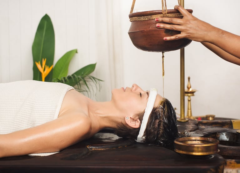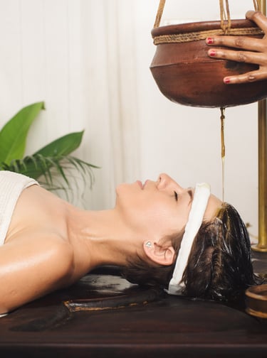 Shirodhara ist eine traditionelle ayurvedische Behandlung, bei der ein sanfter, kontinuierlicher Strom von warmem Kräuteröl auf die Stirn fließt. Diese beruhigende Behandlung wirkt tief entspannend auf das Nervensystem und bringt Geist und Emotionen ins Gleichgewicht. Sie ist besonders wirksam bei Stress, Schlafstörungen, geistiger Erschöpfung und innerer Unruhe. Der gleichmäßige Ölfluss aktiviert das dritte Auge (Ajna-Chakra) und fördert Klarheit sowie inneren Frieden. Shirodhara vermittelt ein Gefühl tiefer Gelassenheit und mentaler Frische – wie ein Reset für Körper und Seele.