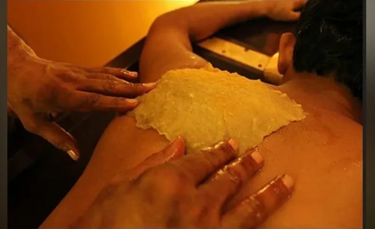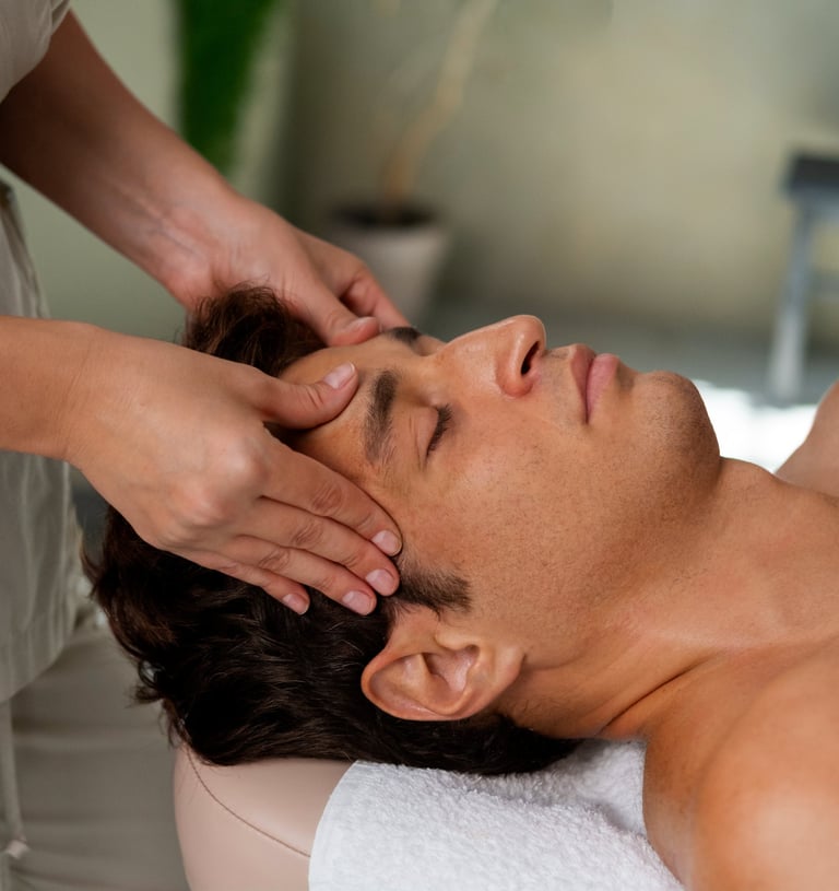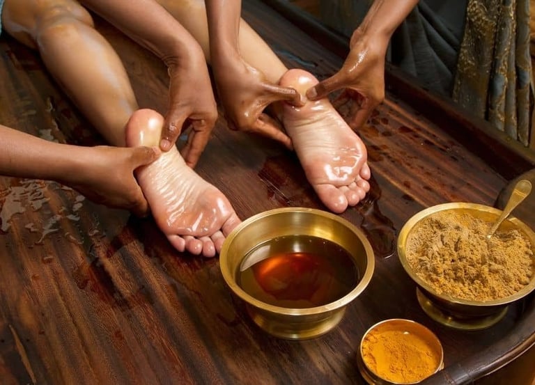Sarvanga Abhyanga (Intensiv) ist eine tief therapeutische ayurvedische Ganzkörpermassage, die vom Kopf bis zu den Fußsohlen reicht. Durch gezielte Massagegriffe und Druck auf die Marma-Punkte wird der Energiefluss im gesamten Körper harmonisiert. Die Massage beginnt am Kopf und setzt sich über den gesamten Körper bis zu den Füßen fort – sie fördert tiefe Entspannung und Revitalisierung. Warme, individuell ausgewählte Kräuteröle unterstützen die Entgiftung, nähren das Gewebe und lösen tief sitzende Spannungen.