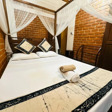 Genießen Sie ein makellos sauberes Zimmer, das mit natürlichen Materialien gestaltet wurde, um eine ruhige und entspannende Atmosphäre zu schaffen. Eine Klimaanlage sorgt bei Bedarf für angenehme Temperaturen – perfekt für erholsame Nächte.