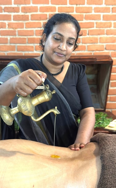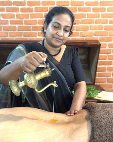Unter Verwendung der reichen, natürlichen Ressourcen Sri Lankas beinhalten unsere Therapien lokale Heilkräuter, Öle und über Generationen weitergegebene Techniken, die eine tiefgreifende, ganzheitliche Heilerfahrung ermöglichen. Ob zur Stressreduktion, zur Verbesserung Ihrer Gesundheit oder um sich einfach eine transformative Wellnessreise zu gönnen – unsere Panchakarma-Behandlungen werden individuell auf Ihre Bedürfnisse abgestimmt und führen Sie zurück zu einem Zustand von Harmonie und Vitalität.