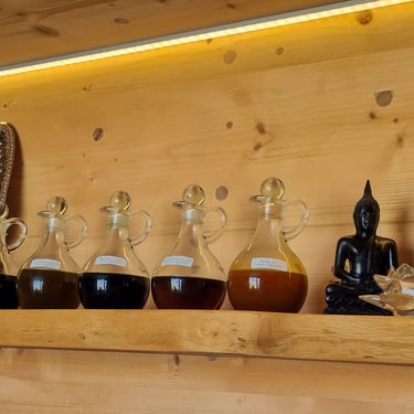 Jede Behandlung wird mit naturreinen ayurvedischen Ölen durchgeführt, die nach traditionellen Rezepturen hergestellt werden